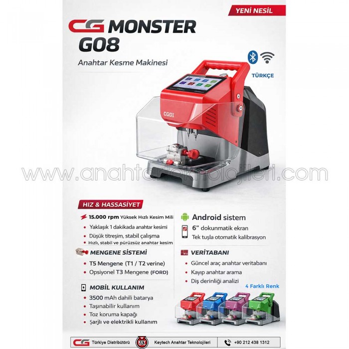 CGDI MONSTER G08, profesyonel anahtar kesiminde hız, doğruluk ve teknoloji arayanlar için ideal tercihtir.